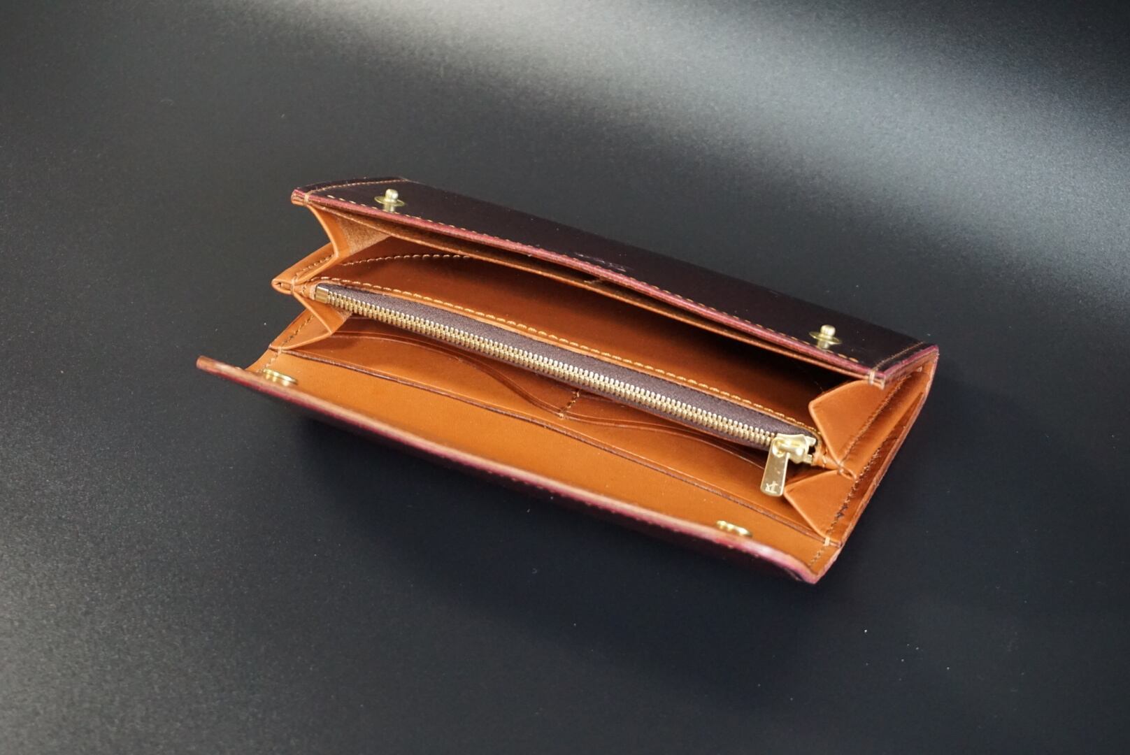 外装にルガトショルダーを使用したシンプルなデザインのロングウォレットです。内装にはオイルレザーを使用しています。