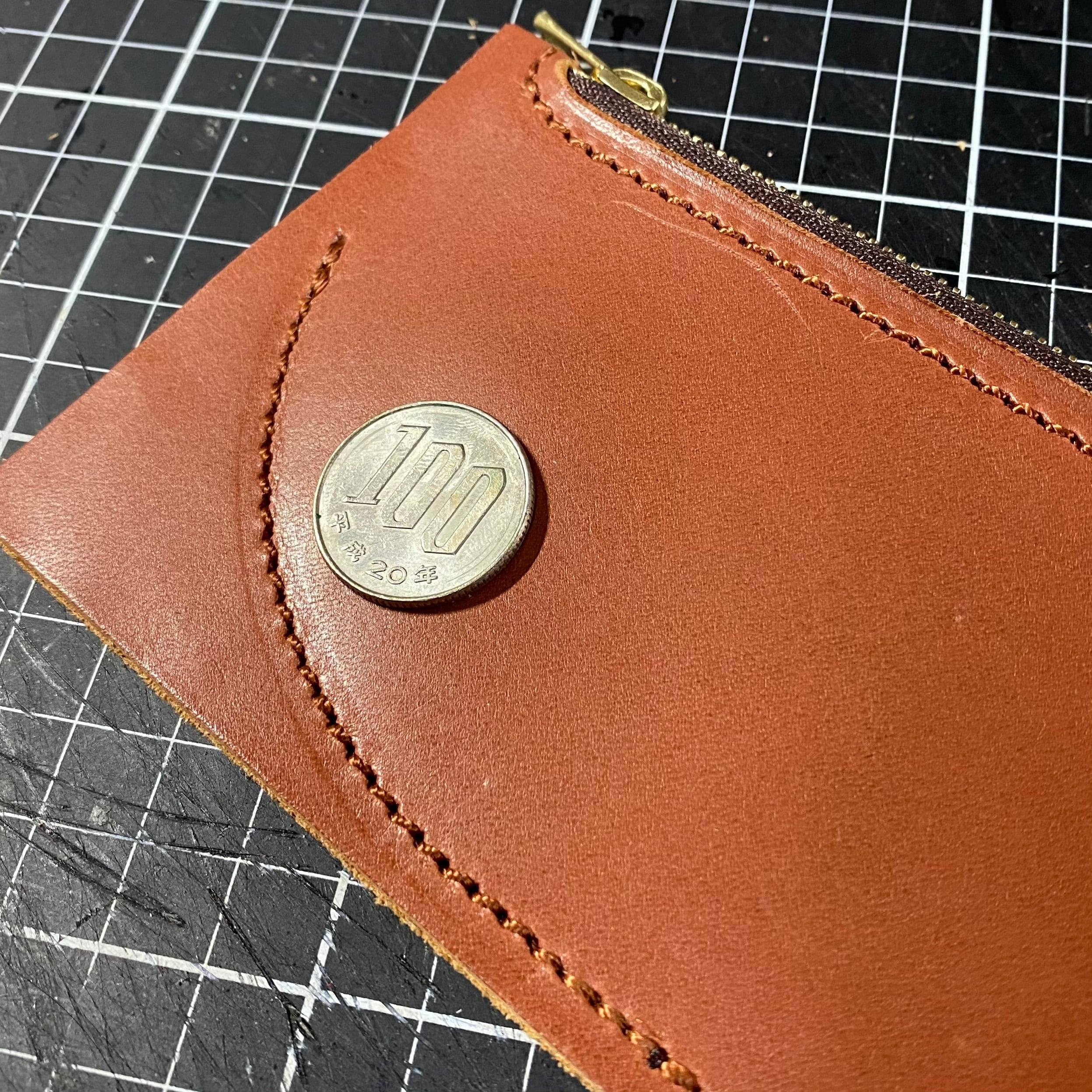 コインケースは縫い方を工夫し、小銭が自然に中央に集まるようにしています。角に小銭が挟まりません。(画像6枚目)