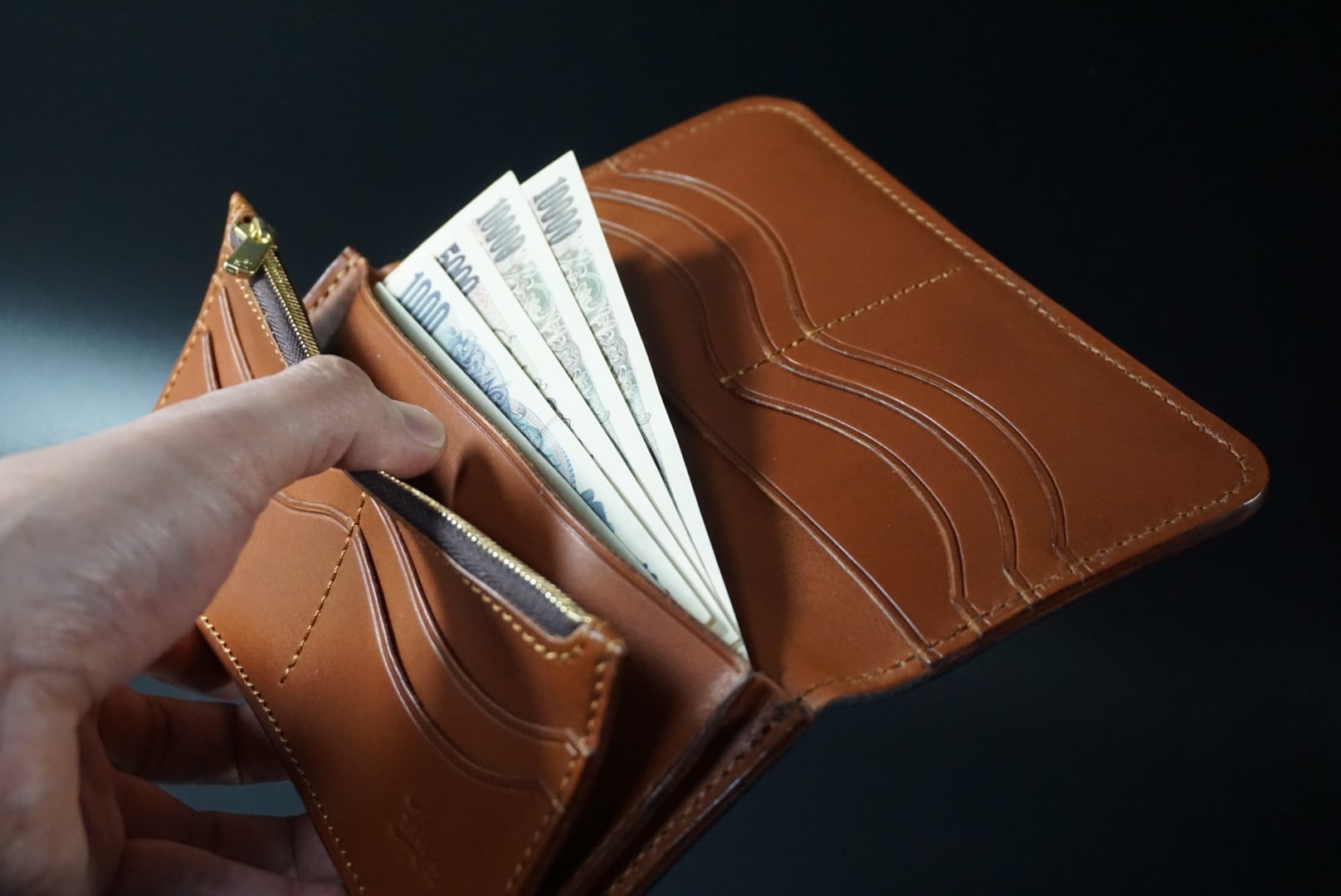 コインケースには高級ファスナーYKKエクセラを使用しています。