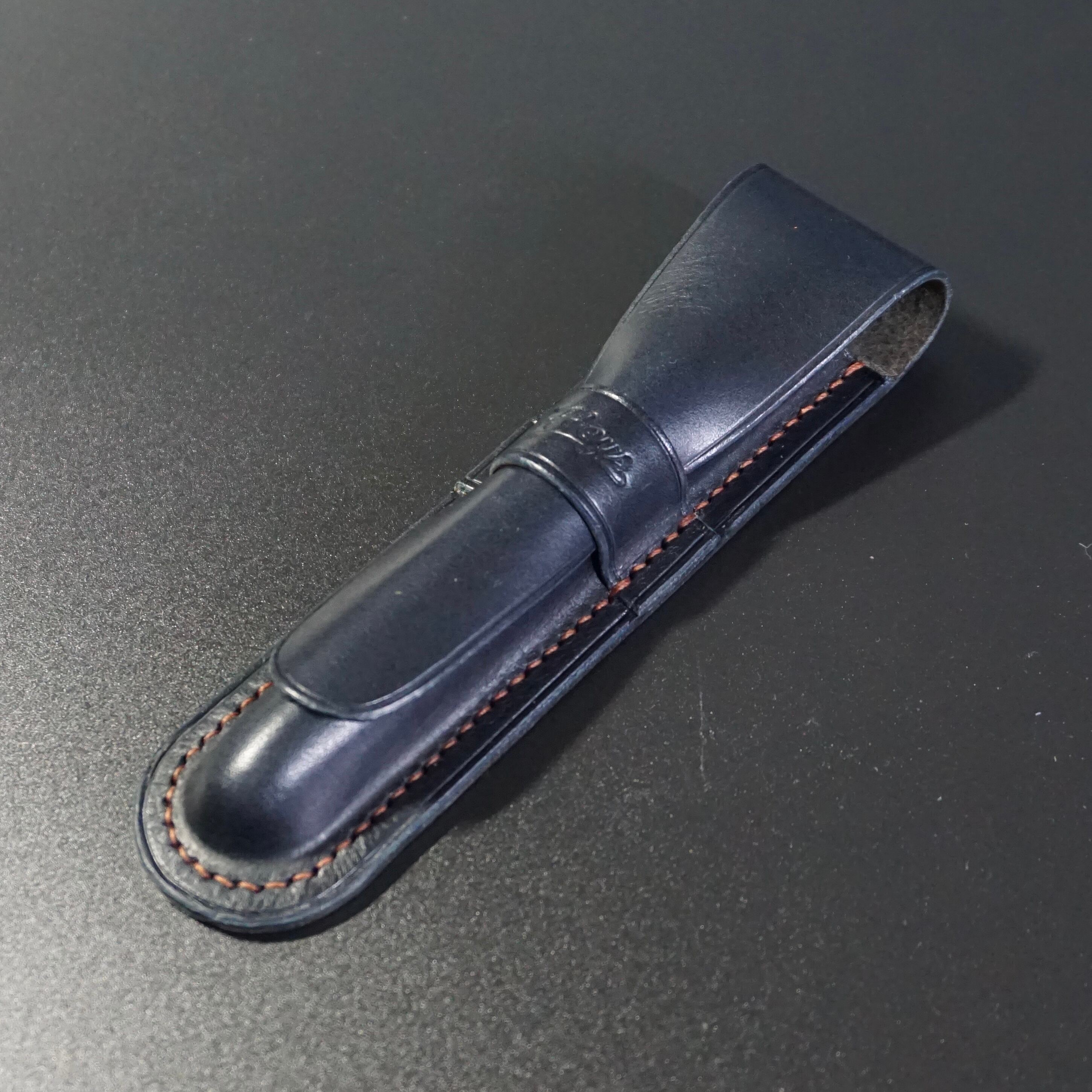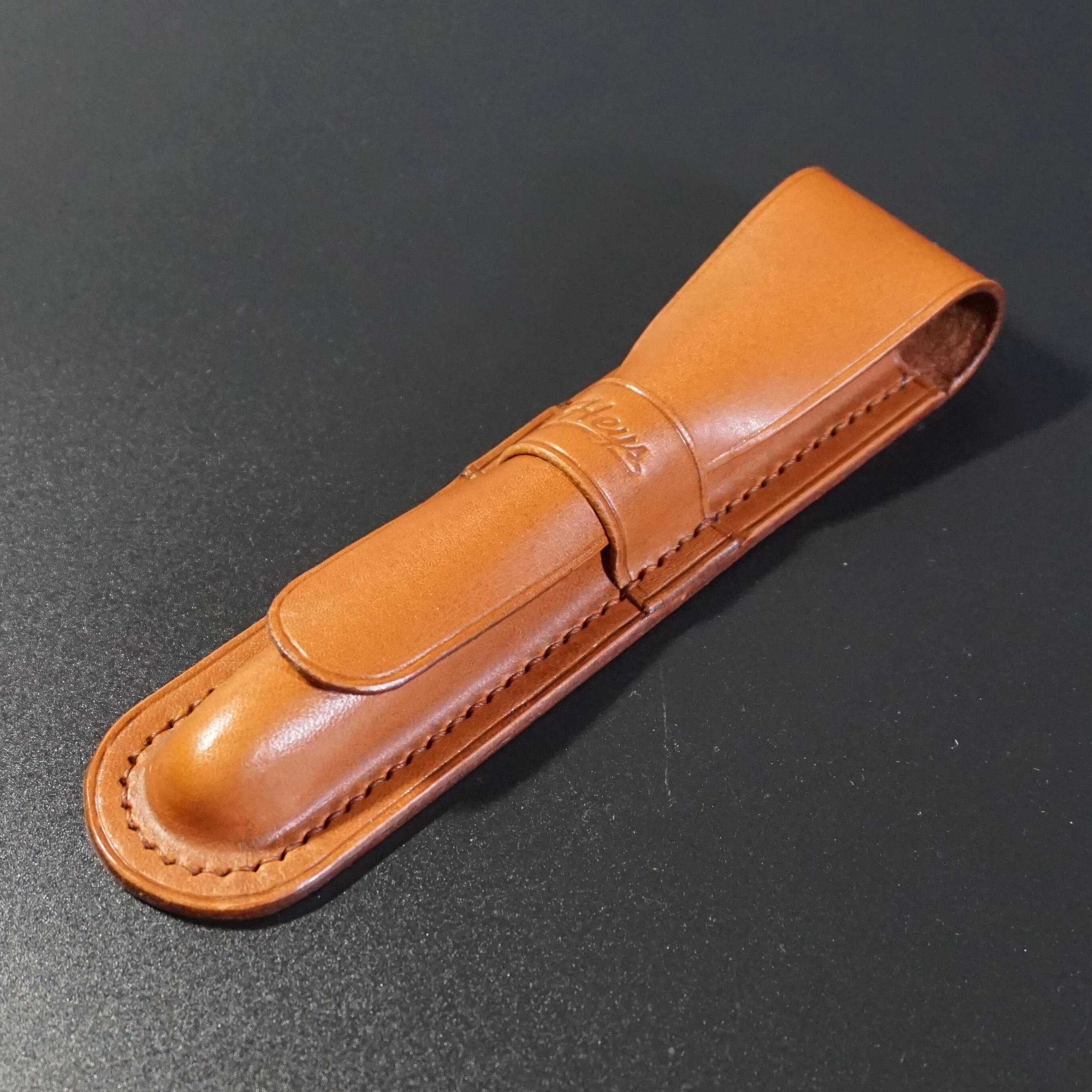 オイルレザー【ブルガロ】を使用したペンシースです。